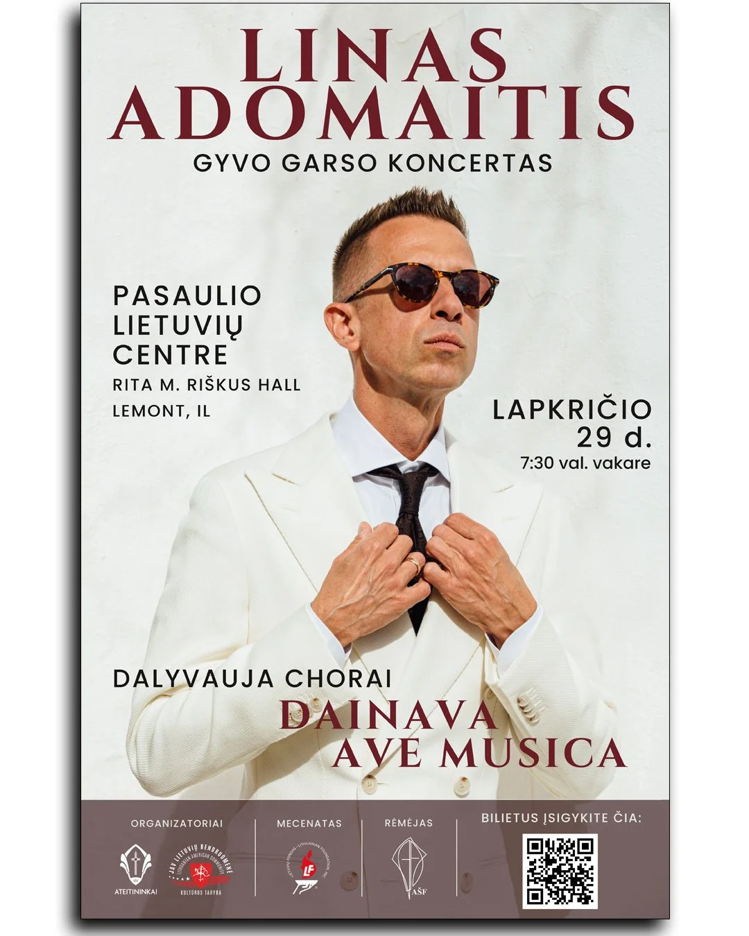 Dar norime atkreipti dėmesį, kad užsiregistravus Šiaurės Amerikos ateitininkų šventei, bus galima nusipirkti bilietus į Lino Adomaičio koncertą pigesne kaina ($40). Tad kviečiame nedelsiant registruotis šventei … o tuo pačiu atvykti ir į koncertą!